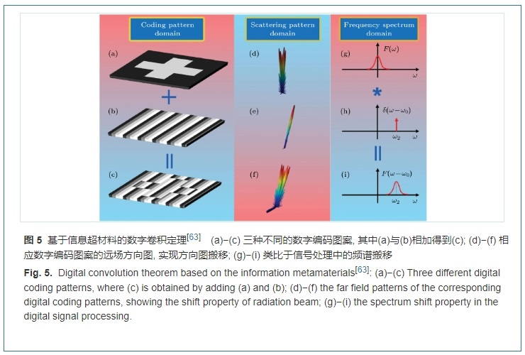 数字编码表征使得信息超材料的物理特征和功能不但受物理学原理(例如几何光学、物理光学、麦克斯韦方程、近远场散射等)所支配, 而且可以在超材料的物理空间上进行信息操作和数字信号处理运算.