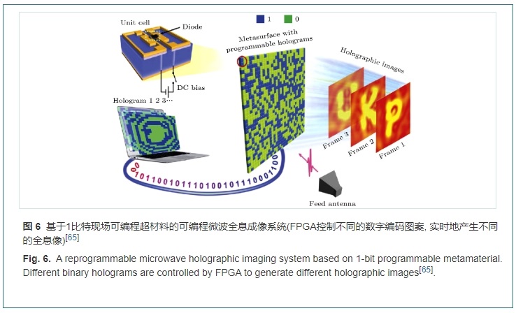 自从2014年本研究组提出数字编码和可编程超材料的概念以来, 信息超材料已经发展成为一个新的领域, 这个领域在不到六年的时间里得到了长足发展. 信息超材料的提出不仅简化了超材料的设计流程, 提高了电磁波调控的灵活度, 扩大了调控范围, 实现了实时调控, 其最大的特色是在超材料的物理空间上构建了数字空间, 从而可对电磁波的物理特征和数字信息同时进行调控, 促进了其与物理和信息领域的原理方法相融合, 进而涌现出一系列诸如信息熵、卷积定理、加法定理等可对信息量、电磁波的幅度、相位、极化、频谱、波束灵活调控的全新算法. 更为重要的是, 信息超材料将超材料的研究从物理、材料、器件推向新构架系统, 通过将微波射频和数字信息处理构建于同一平台, 研制出基于信息超材料架构的全息成像、微波成像和无线通信系统.